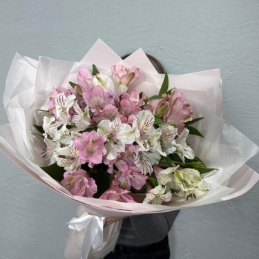 Букет из микс альстромерий белых и розовых